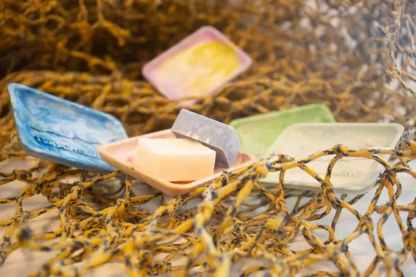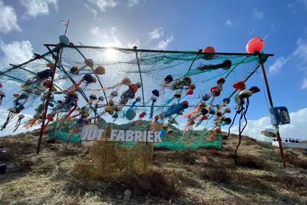 En zo komt het weer naar buiten. Niet als afval op het strand, maar als haakje, schaaltje of ander duurzaam product.