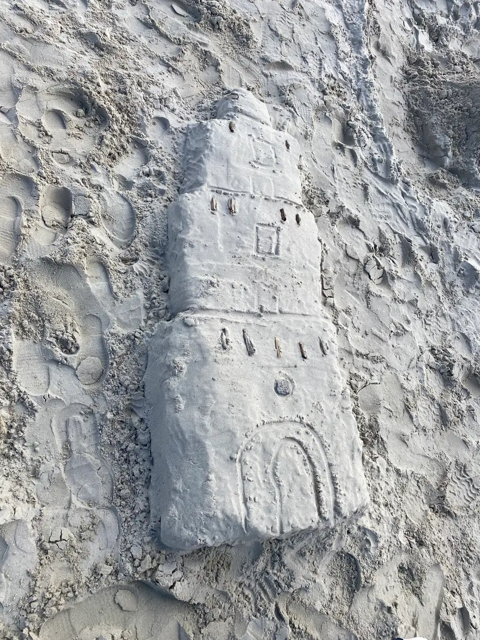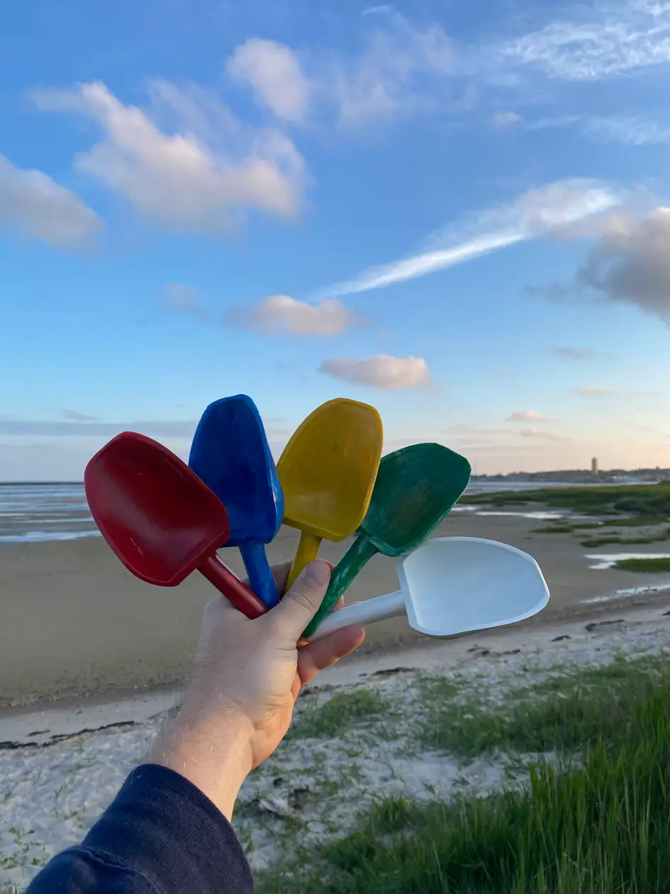 Dit schepje hadden ze nodig om deel te nemen aan de grootste zandkastelenwedstrijd van het eiland. Van tevoren maakten de kinderen bouwtekeningen van hun mooiste zandkasteel. De wedstrijd vond plaats op het festivalterrein op het strand.